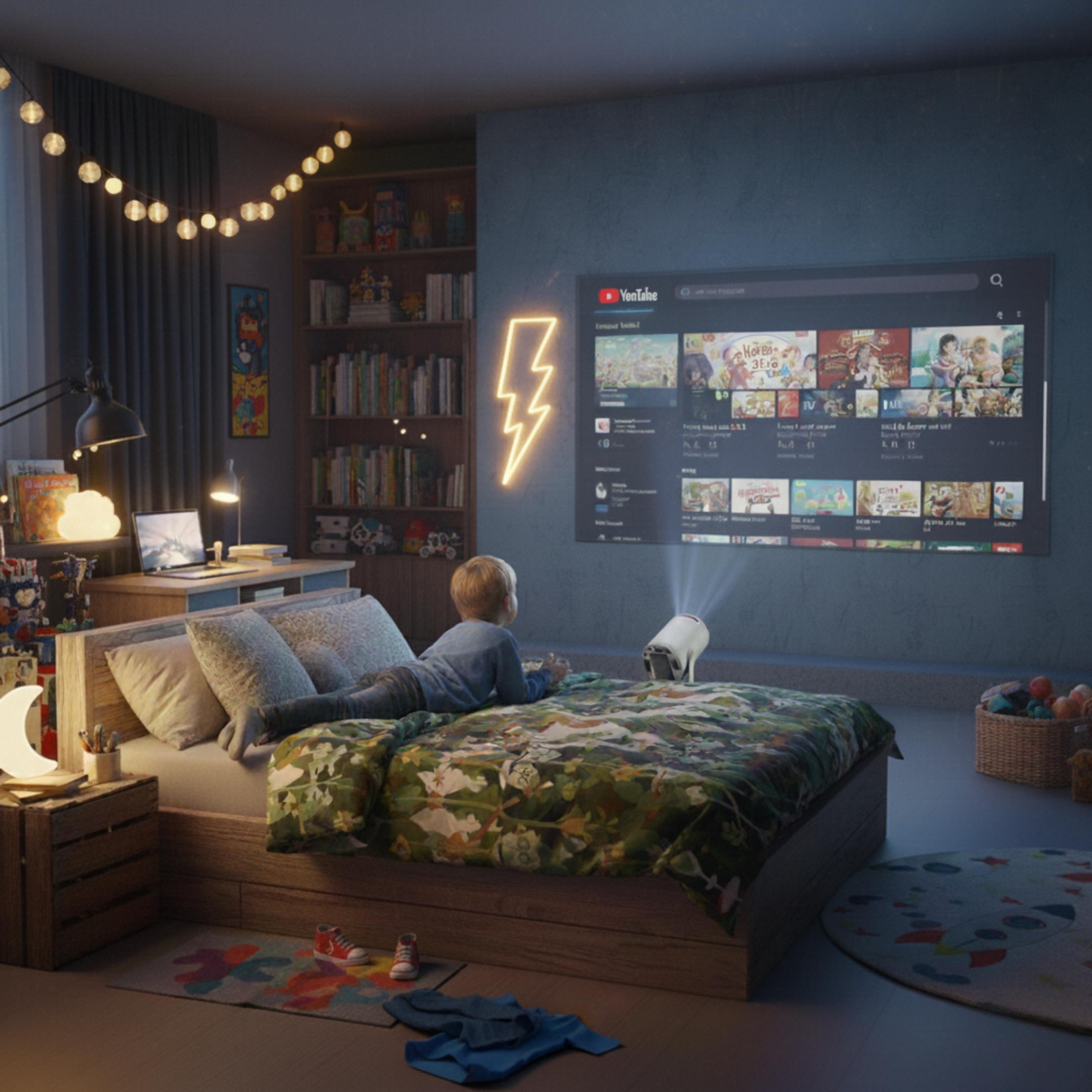 Perfekt för filmkvällar, resor eller spontana spelkvällar – Vision Beam Pro – Play Edition kombinerar teknik, lek och familjeglädje i ett kompakt format.